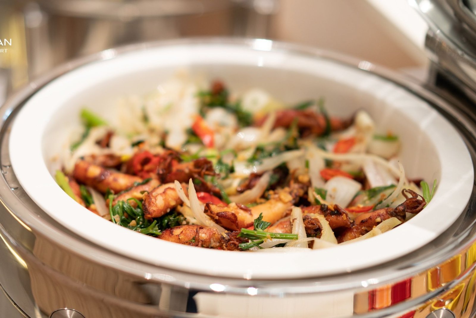 Sunset Breeze Eatery at The Arena Cam Ranh invites you on a delectable voyage amidst a tranquil beachfront ambiance. Focused on authentic coastal flavors, this dining haven harmonizes traditional recipes with the freshest local produce, encapsulating the spirit of Cam Ranh. Whether seated indoors or on the breezy terrace, Sunset Breeze Eatery exudes a welcoming charm, offering a scenic backdrop of the azure waters for you to relish delectable dishes inspired by the coastal region.