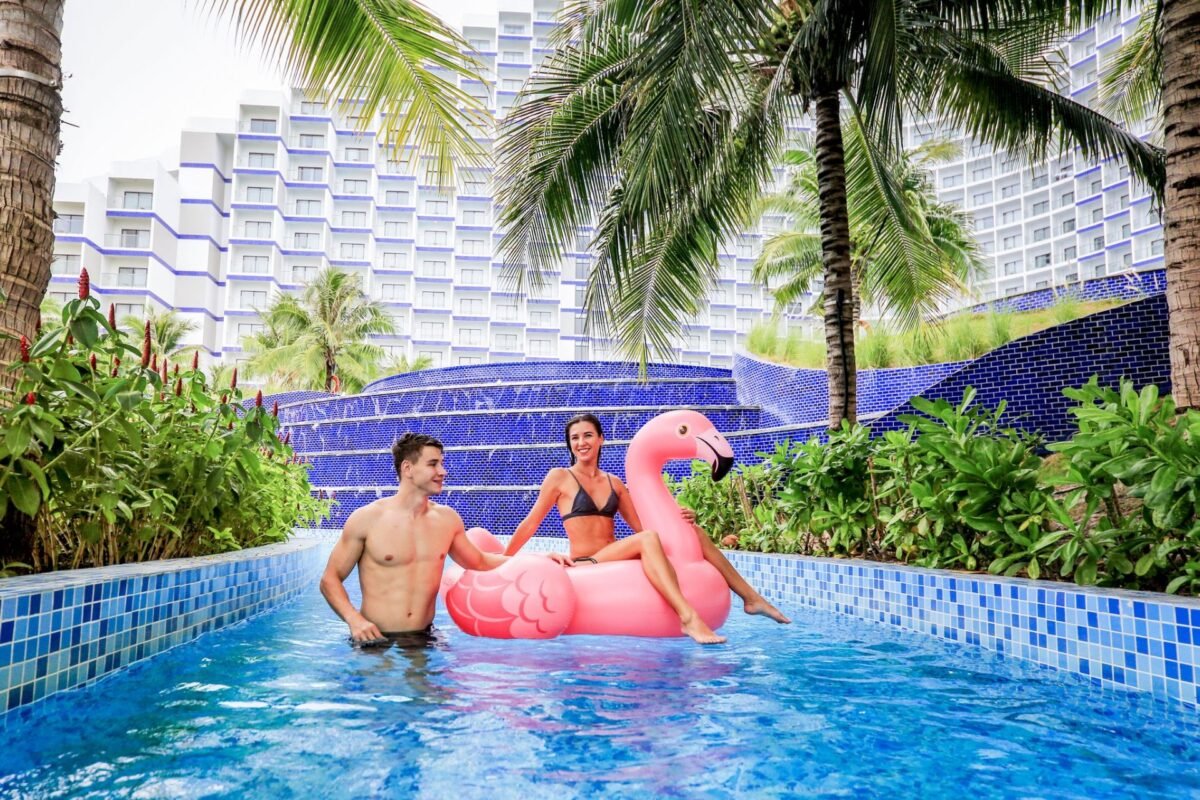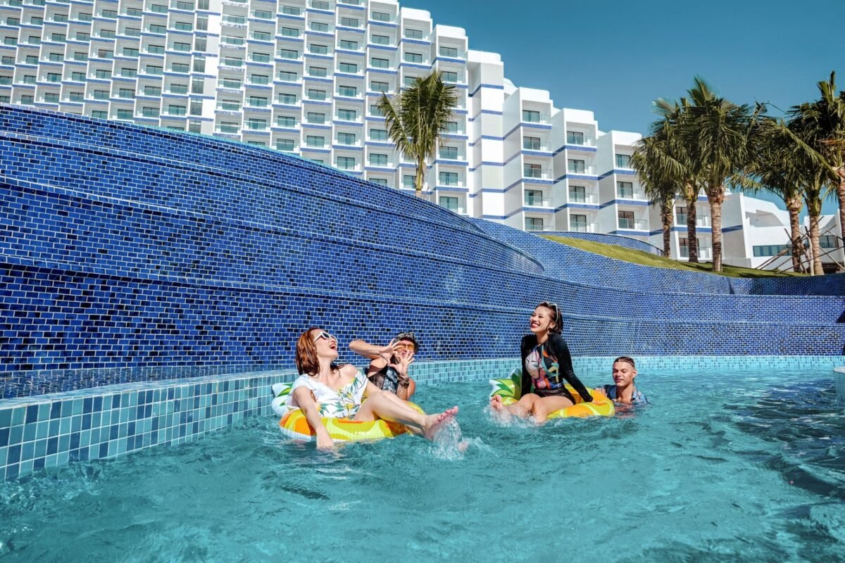 Dive into a world of relaxation and fun at the swimming pool in The Arena Seaview Cam Ranh, where crystal-clear waters, luxurious loungers, and a tranquil ambiance invite you to unwind, rejuvenate, and create unforgettable memories under the warm sun.